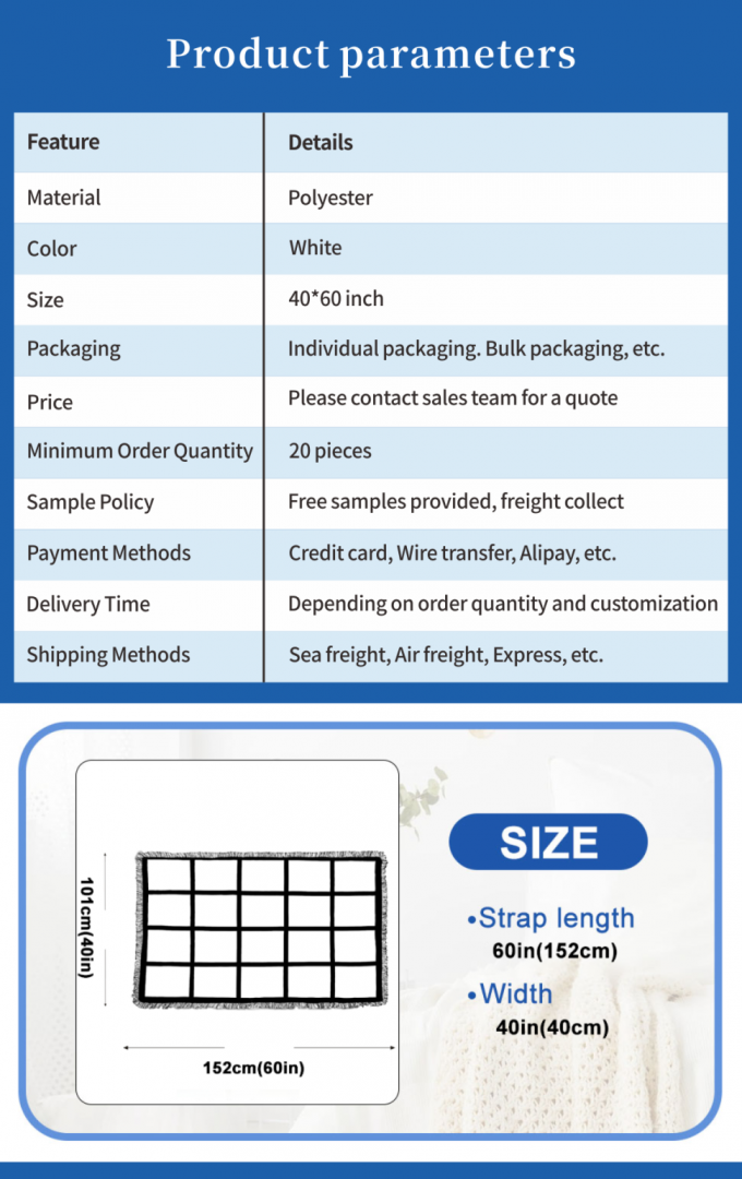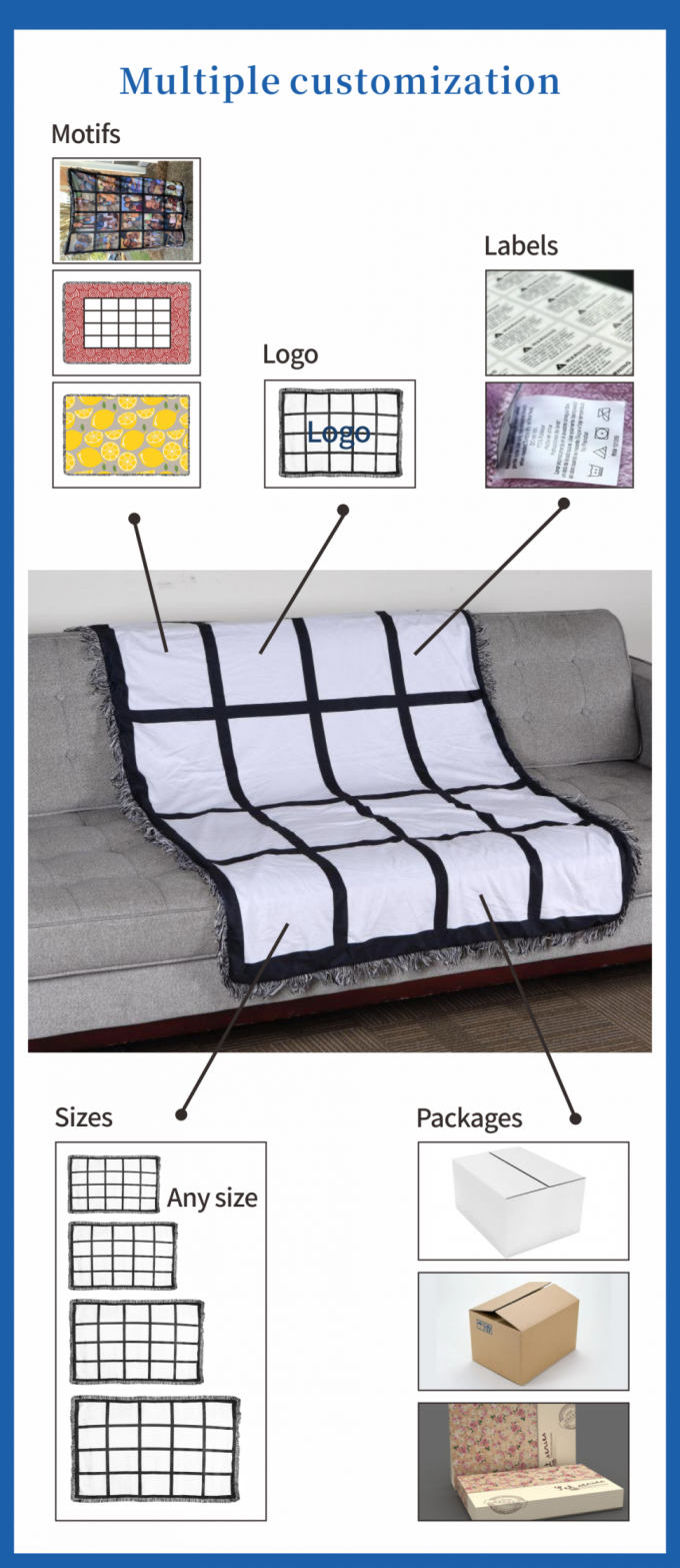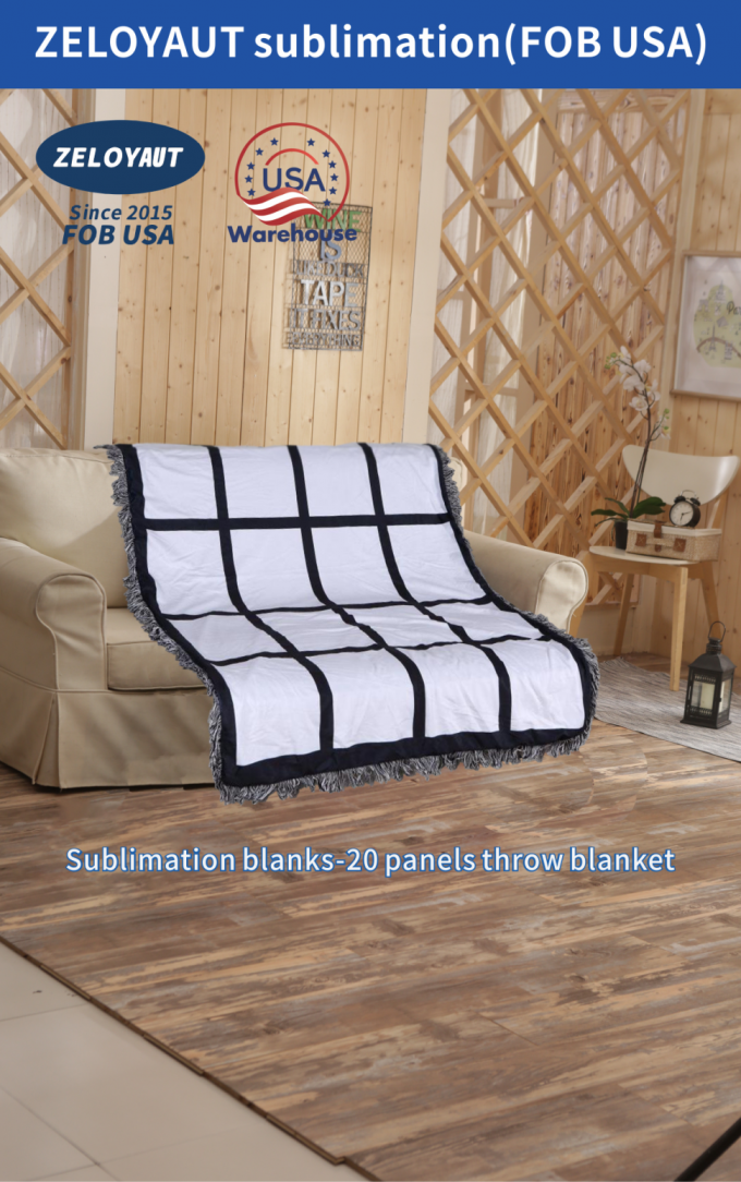 USA倉庫 送料無料 20パネル昇華ブランケット 柔らかい 100%ポリエステル 無地昇華ブランケット ホームデコレーション用