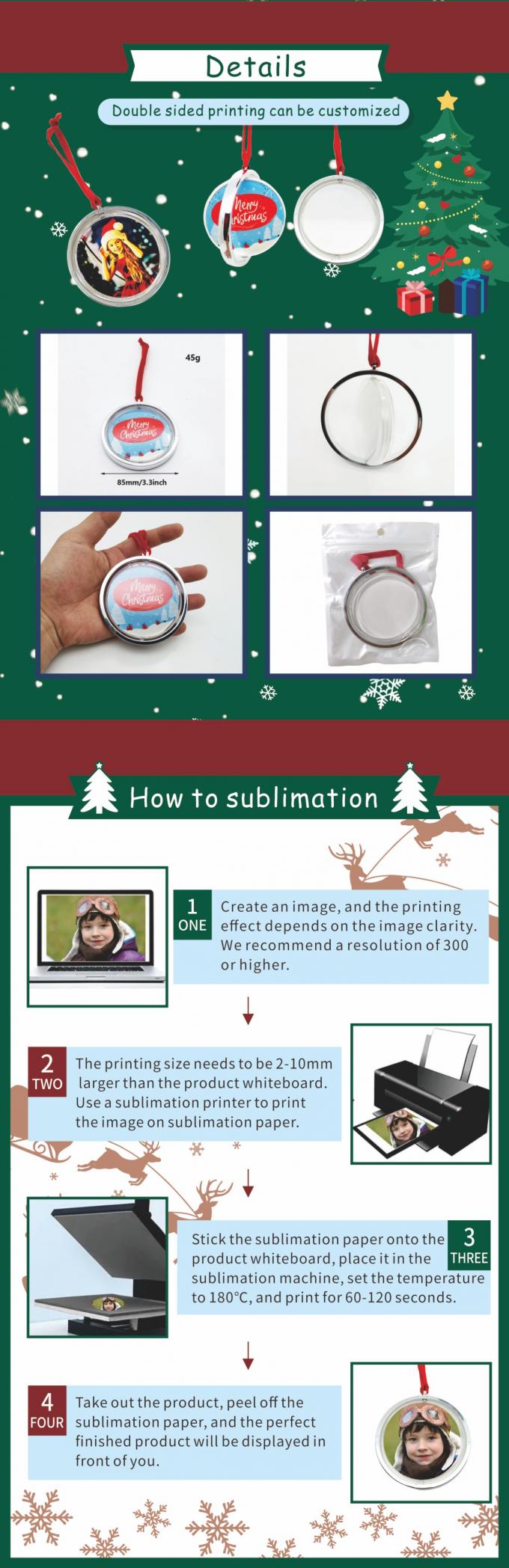 ZELOYAUT 卸売 サブライメーション ブランク ホットセール サブライメーション プラスチック 旋回 飾りボール カスタム クリスマス ペンダント ギフト