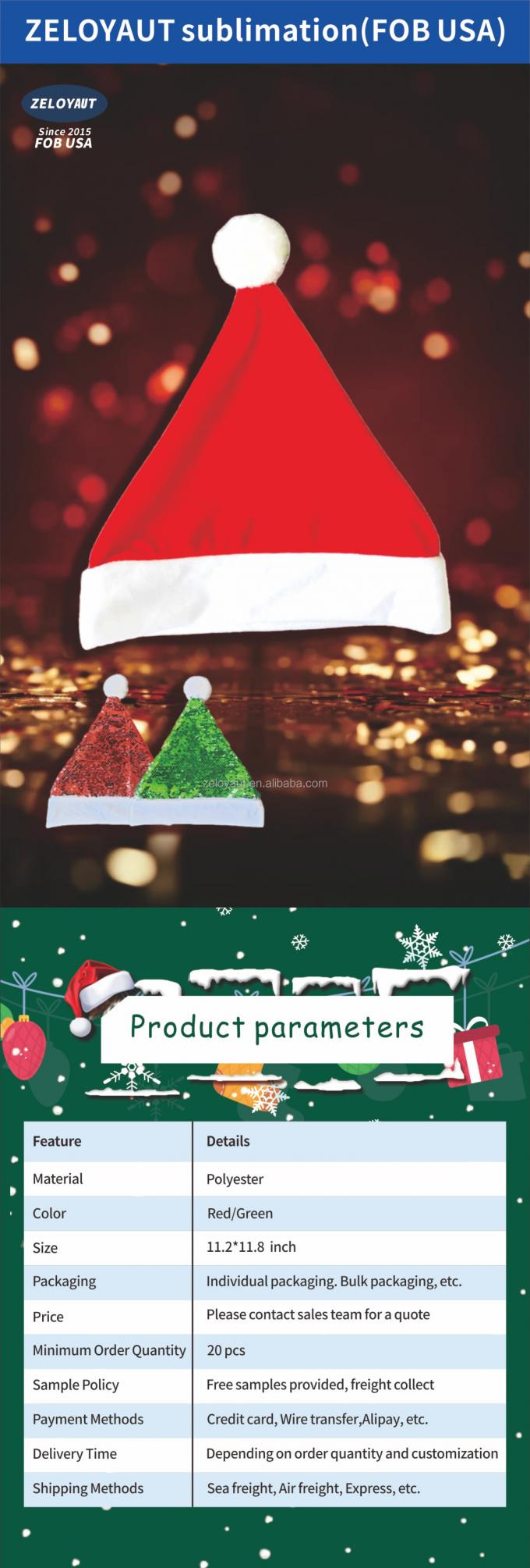 2025年 工場直販 クリスマス サンタクロース 帽子 ブランク サブリメーション ポリエステル生地 ホームデコレーション ノベルティギフト用