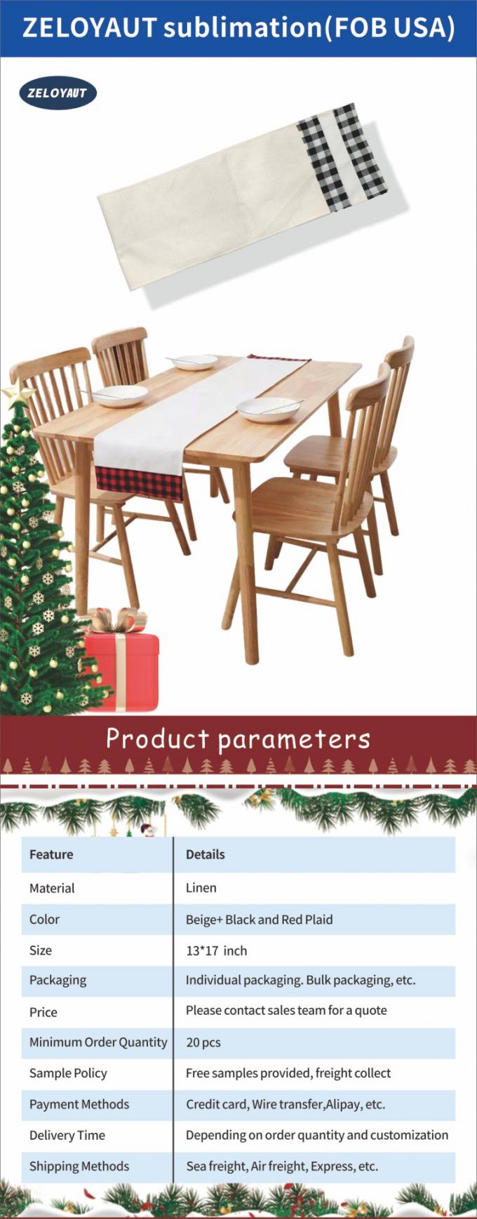 | Handmade: | いいえ | Product Name: | 昇華チェック柄テーブルランナーブランク |