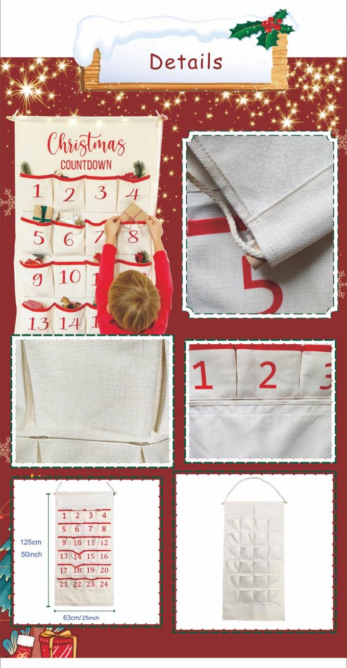 ZELOYAUT ホールセール サブライメーション 空白 パーソナライズ アドベントカレンダー カスタム 壁掛け クリスマスカウントダウン 24 ポケットキャンバス