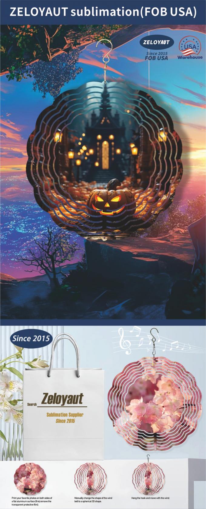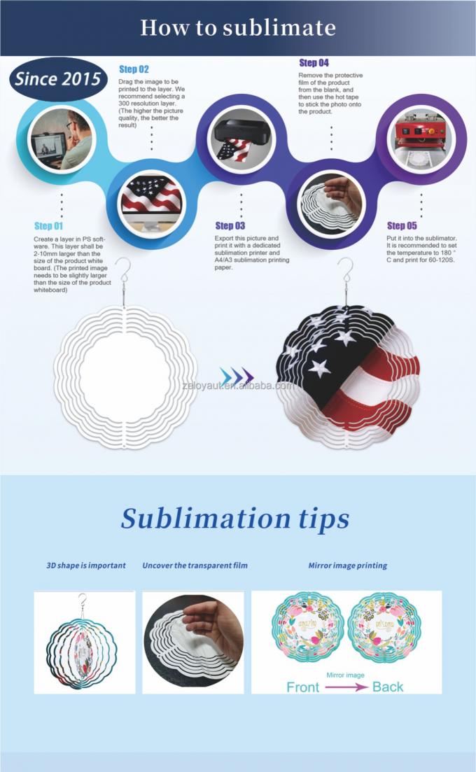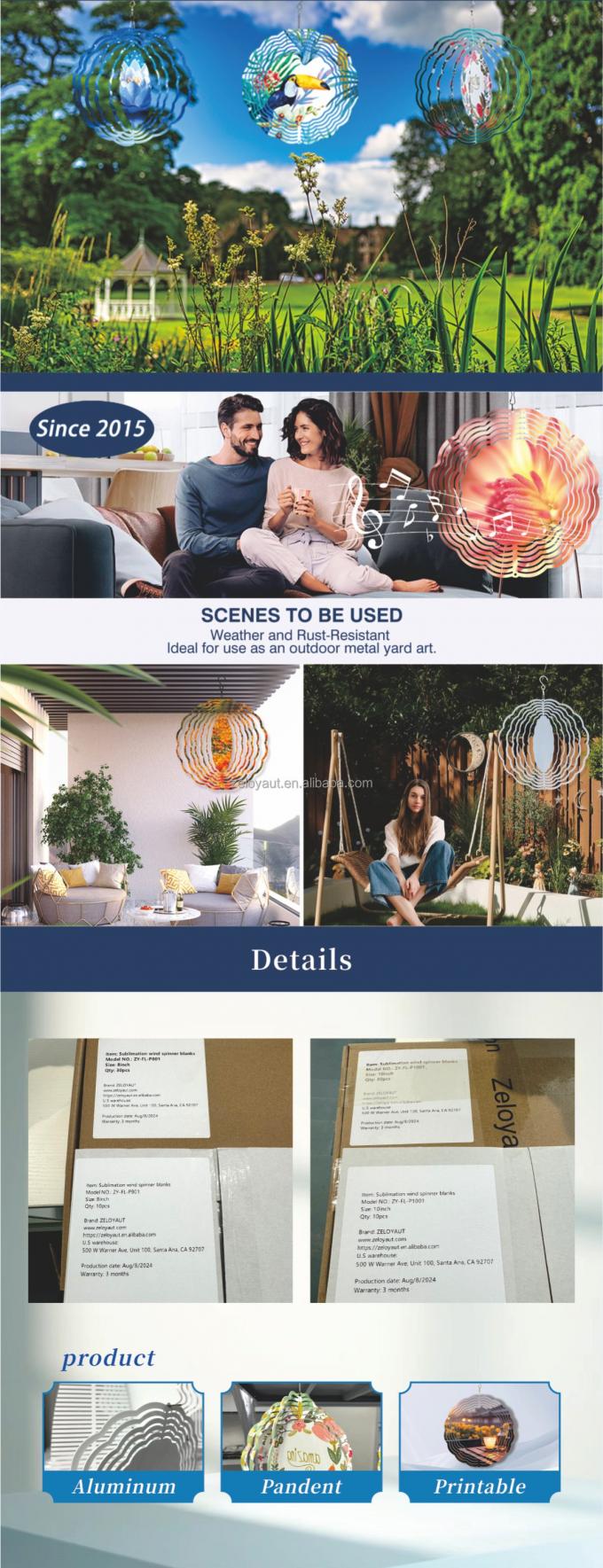 ZELOYAUT 卸売昇華ブランク ホットセール アルミニウム昇華風スピナー 3/8/10インチ メタルクラフト アウトドアオーナメント