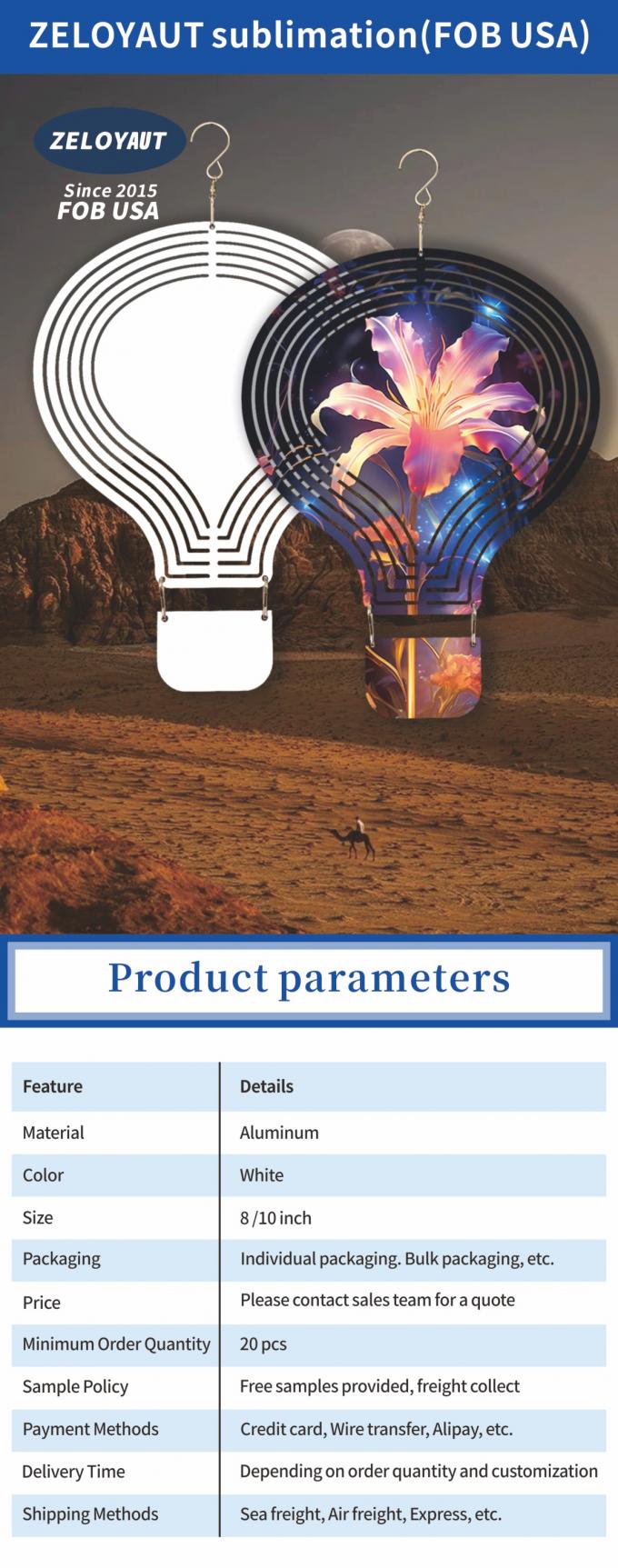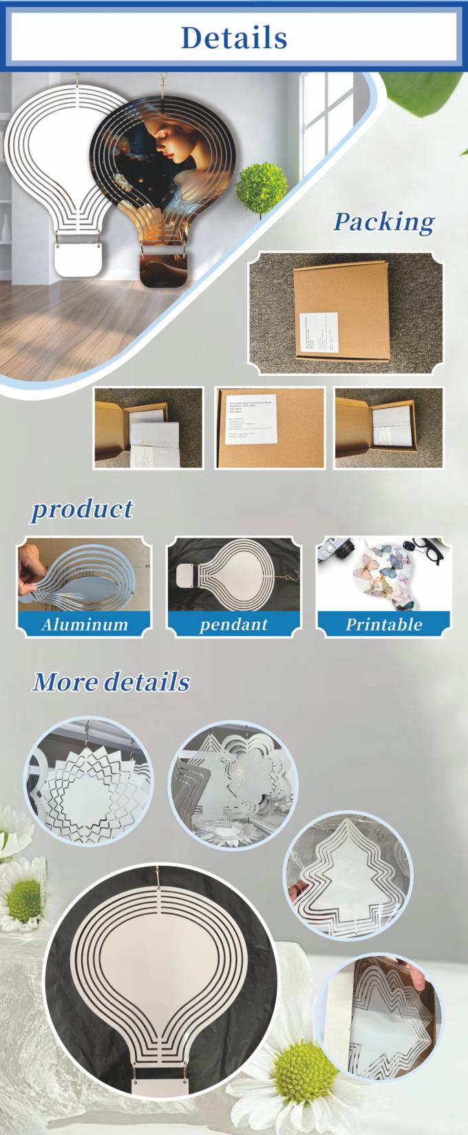 8インチ ホワイト アルミニウムシート 熱気球 サブライメーション 風力回転機 庭の飾り付け用の空白 10インチ ハンキングテール付きホーム・シン