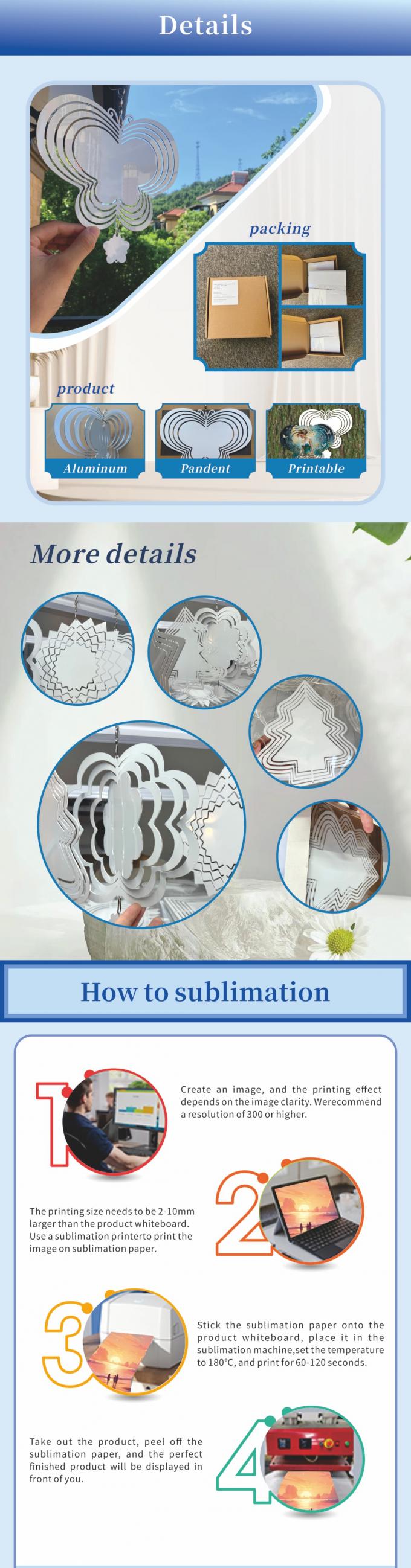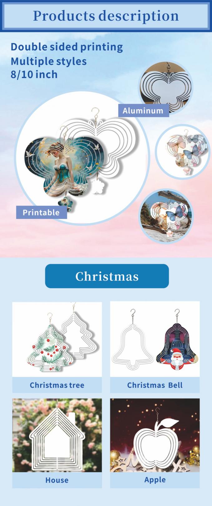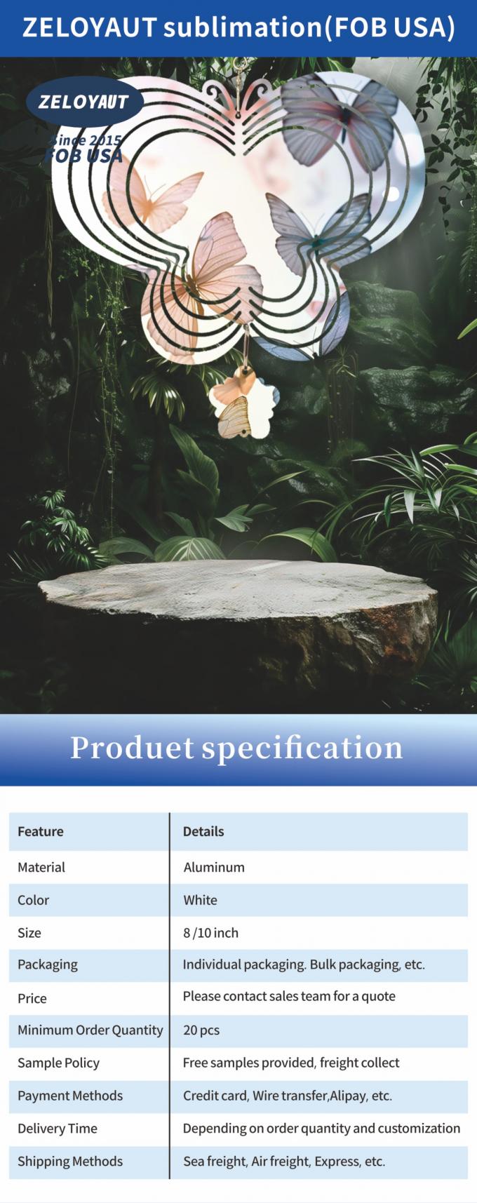 蝶形 サブライメーション 風力スピナー 尾付き空白 双面印刷 8インチ 3D 風力スピナー