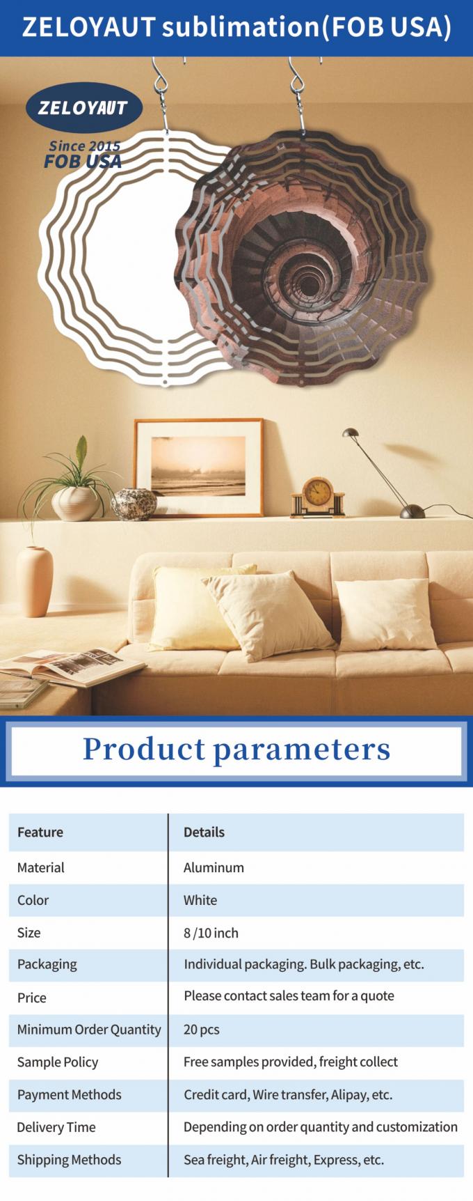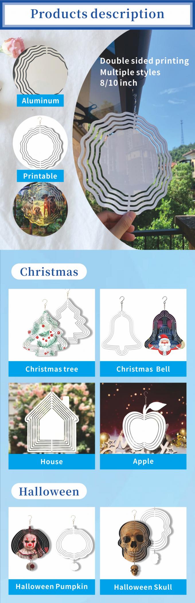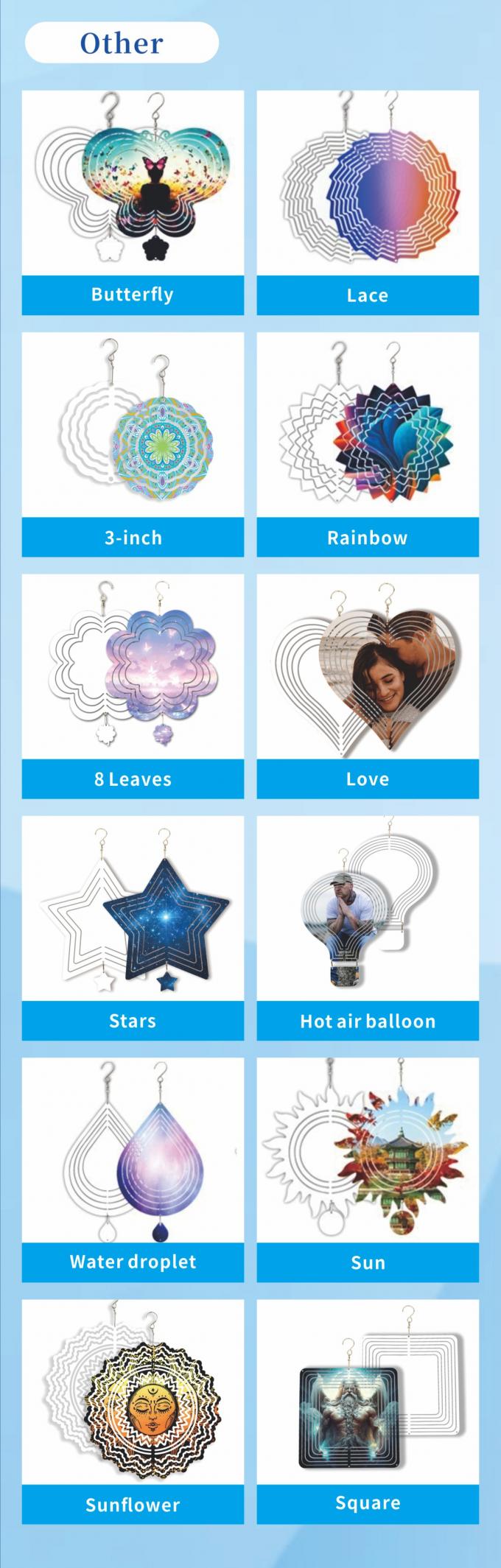高品質新デザインアルミニウムシートウェーブ昇華風スピナーブランクヤード3Dメタル風スピナースパイラル装飾用