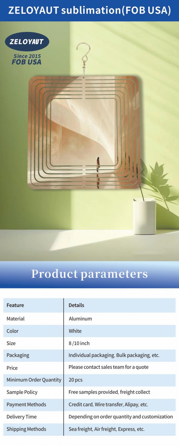 - 製品:サブライメーション スクウェア 形 風力スピナー空白.