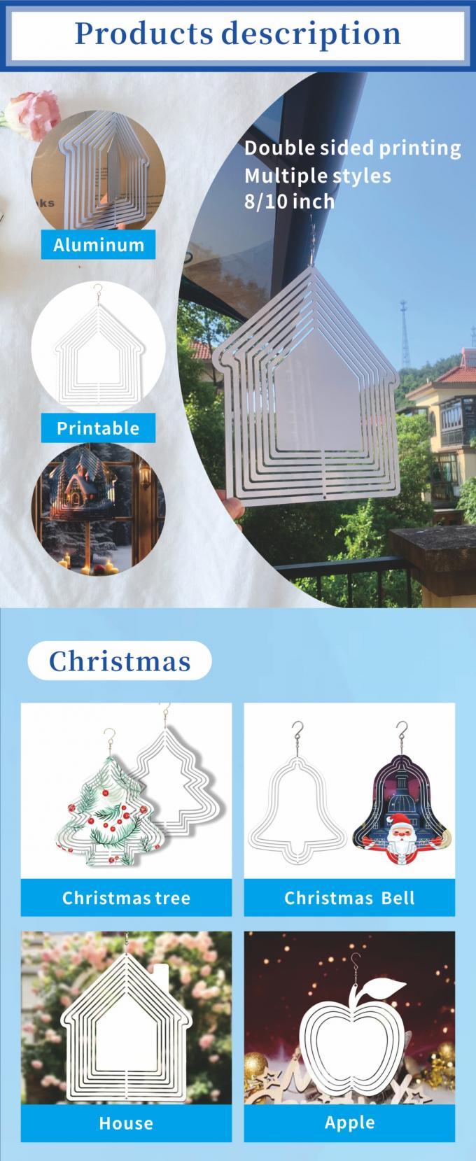 ZELOYAUT ホールセール サブライメーション ブランク アルミ サブライメーション ハウス 風力回転機 3/8/10 インチ メタル・クラフト 屋外飾り ギフト