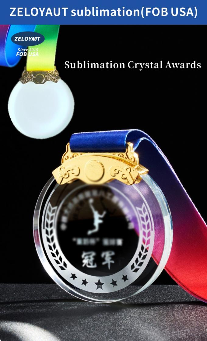 卸売カスタム高品質昇華クリスタル記念メダル スポーツロゴガラスメダル DIYパーソナライズクリスタルクラフト