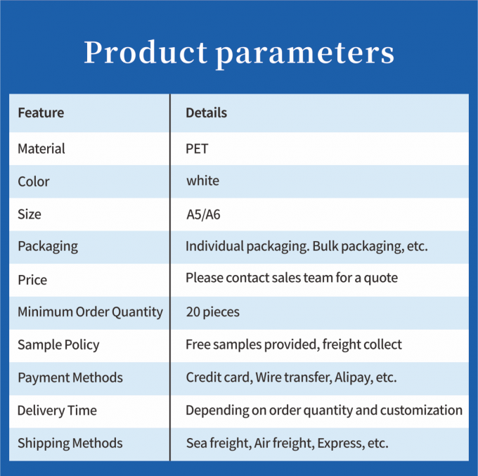 - パーソナライゼーションの可能性:PETカバーは,個人的好みやブランドニーズに合わせて無限のカスタマイズ可能性を可能にする,サブライメーション印刷のための優れた表面を提供します.