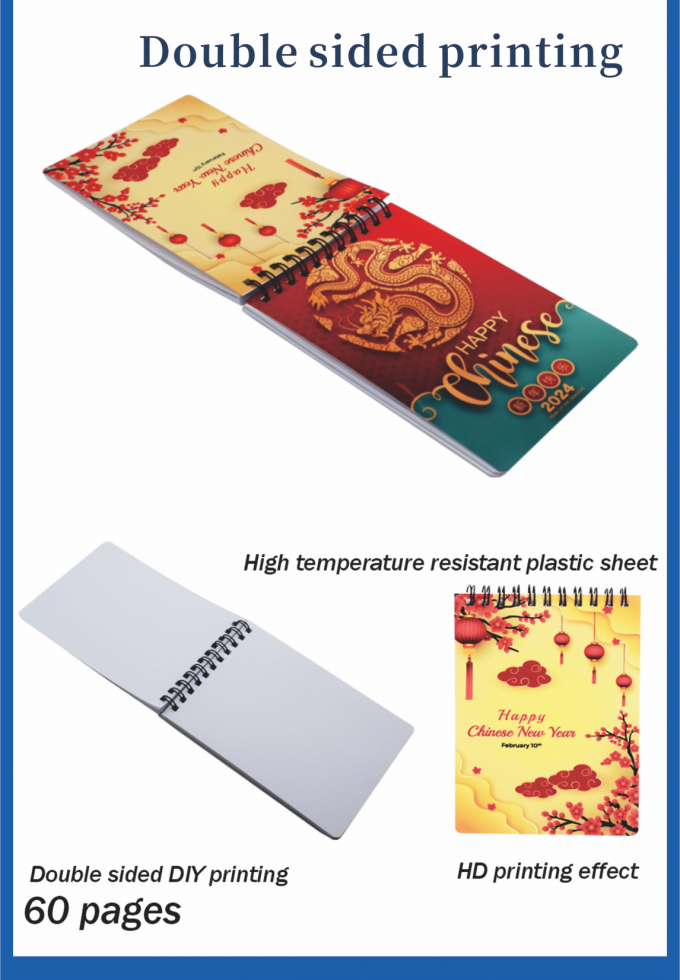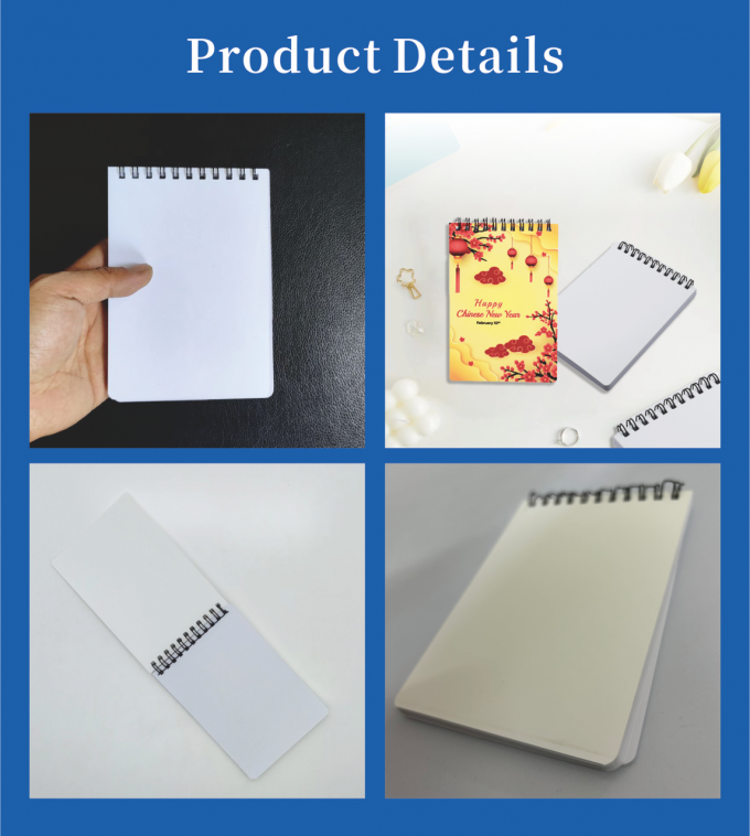 - ノートブックについて: このA6型サブライメーションノートブックには耐久性のあるPETカバーと底面があり,耐久性とサブライメーション印刷のための顕著な3D効果を提供します. 60つの高GSM (100g) ページが含まれています.