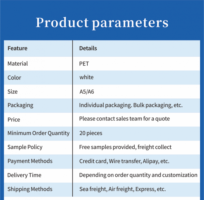 - カスタマイズの可能性:PETカバーはサブリメーション印刷に最適な表面を提供し、個人の好みやブランドのニーズに合わせて無限のカスタマイズの可能性を可能にします。