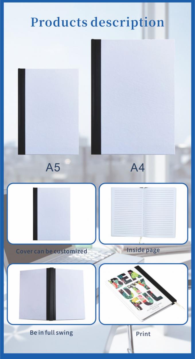 昇華ノートブランク厚紙カバー A4/A5/A6、ホットセール昇華ジャーナル布カバー 学生ギフト用カスタムロゴ