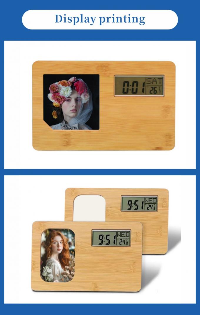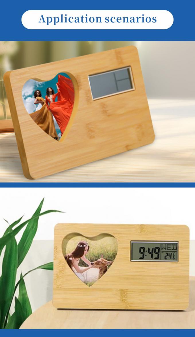 卸売 室内温度と湿度 デジタル 木製テーブルクロック 昇華式写真枠